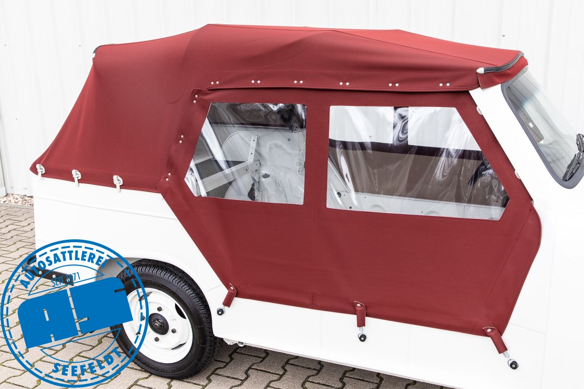 Die Seitenplanen passen nur an Verdecke aus unserer Produktion ab Oktober 2017. Für ältere Verdecke oder Originalverdecke können Sie während des Bestellvorgangs eine Bemerkung hinzufügen.