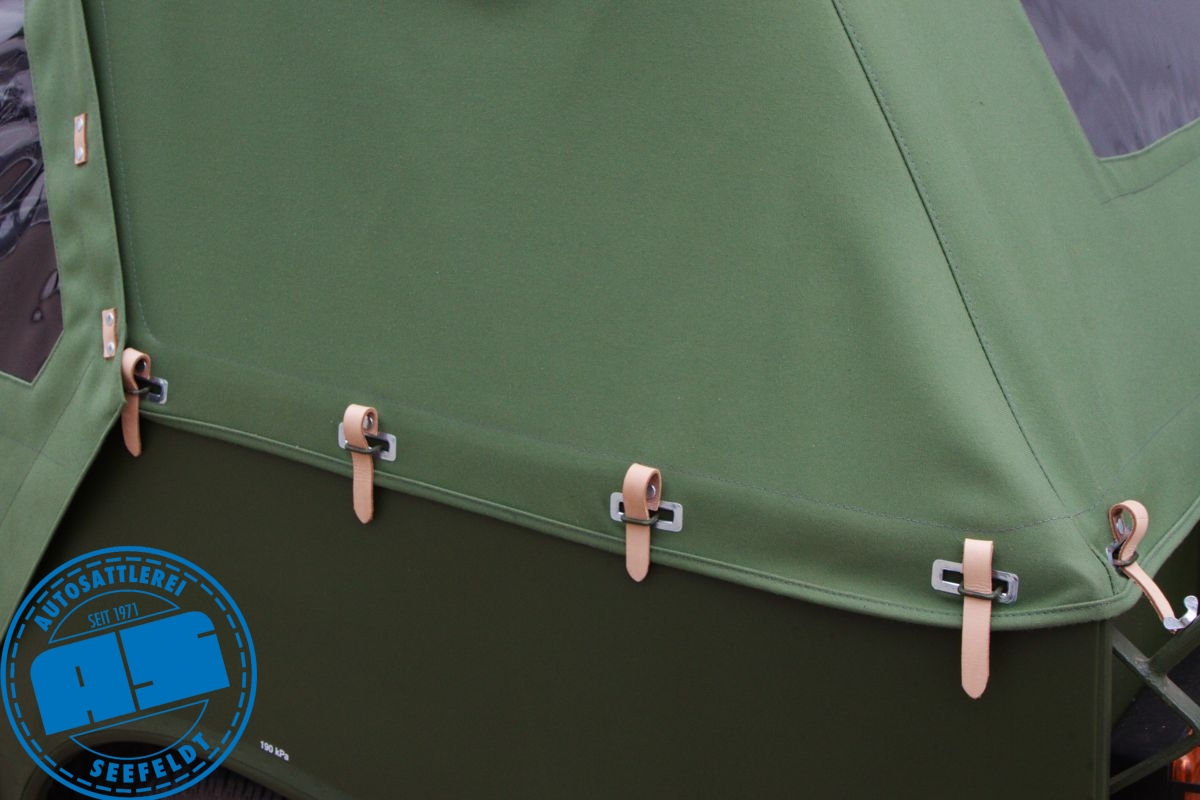 Material: Dreilagiger Verdeckstoff (Nachwebung des Originalverdeckstoffes)